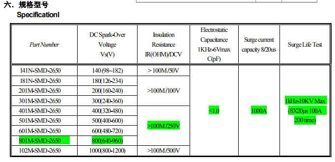 .example: 201 means 20 X 101=200. (DC Spark-Over Voltage)